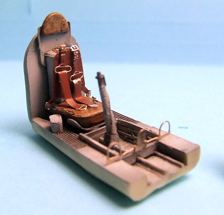 El asiento ya completo con unos fotograbados que trae la maqueta, es curioso estas marcas, traen resina para el copit, fotograbados y luego que malos encajes "po dió!", los fotograbados están montados según he creido ver en las instrucciones, digo "he creido" porque se ven borrosas y no claras, así que es lo que hay, creo que queda chulo.