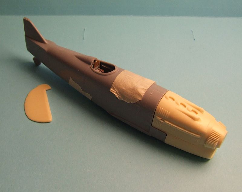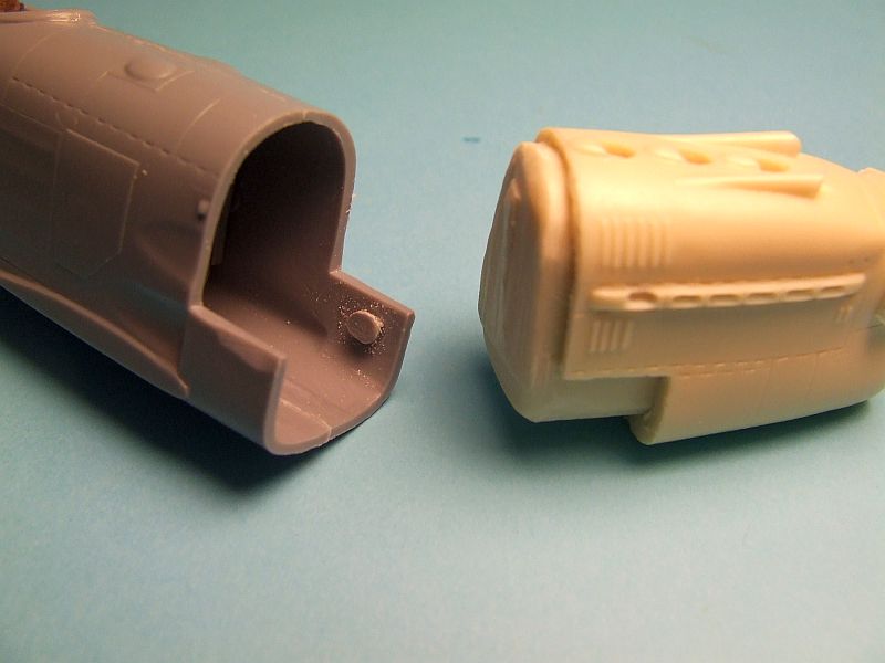 y ahora.. el suplicio de los encajes, pego el puro, no sin esfuerzo, tras el respaldo queda un pequeño hueco que debo tapar con algo de evergreen (muy fino tipo folio), y hago una prueba de encaje del morro-motor del chirri tras quitarle el exceso de resina, 2 cortes en las manos y un pellizco de las tijeras... :D .