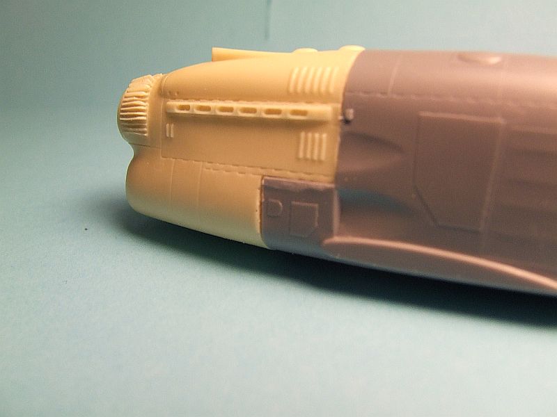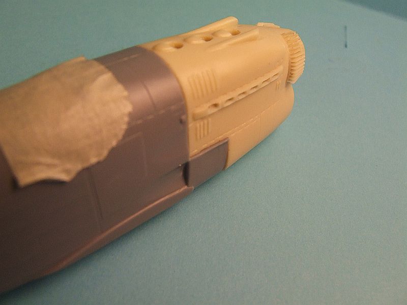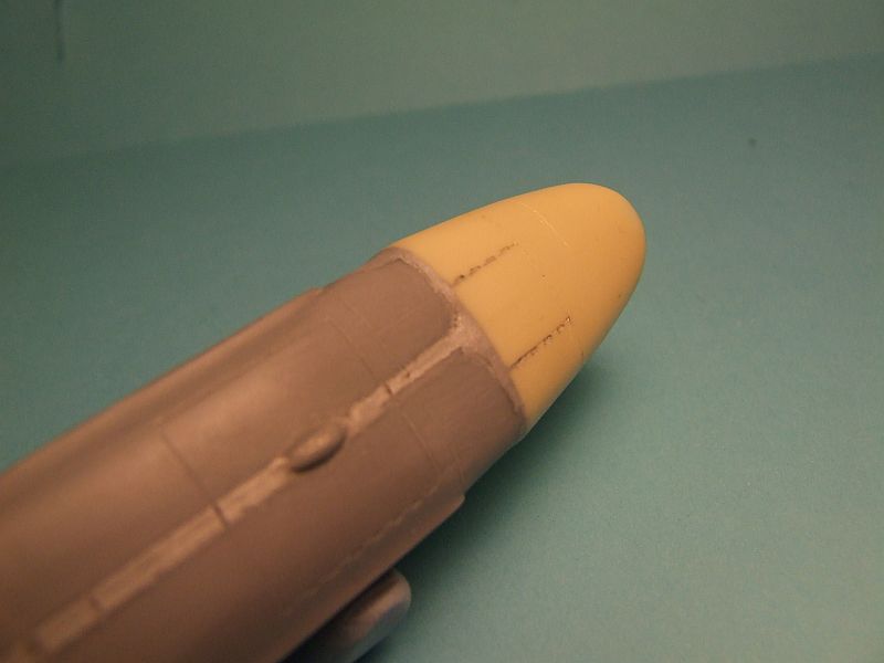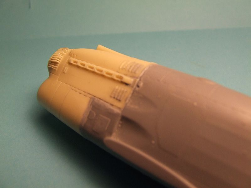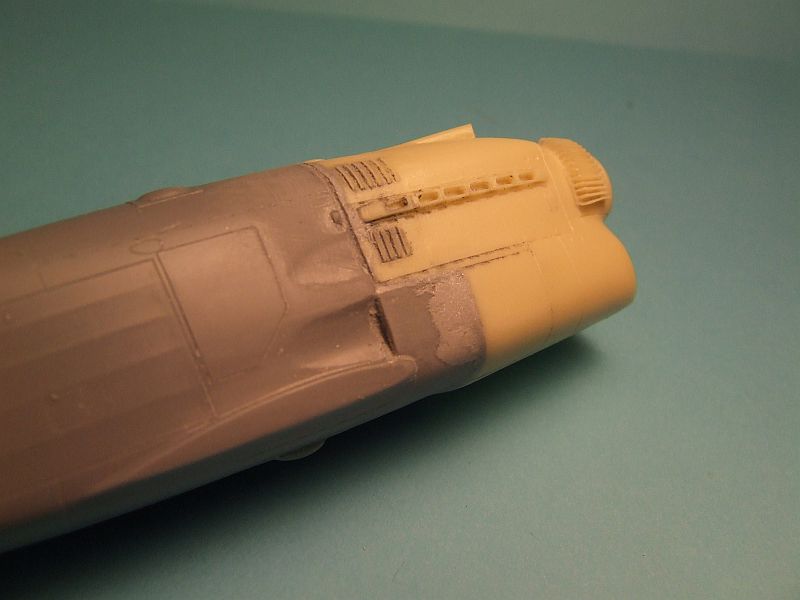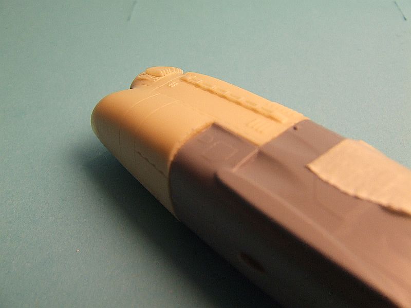 Bueno... creo que he dejado decente esos escalones...he colocado un poco de plastico en el interior para que al meter la resina del morro separe un poco el plastico y acerque los bordes...