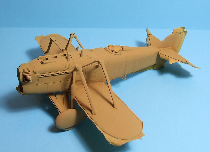 y semifrontal, con el timon de cola tambien en resina, una vez separada la pieza en plástico.