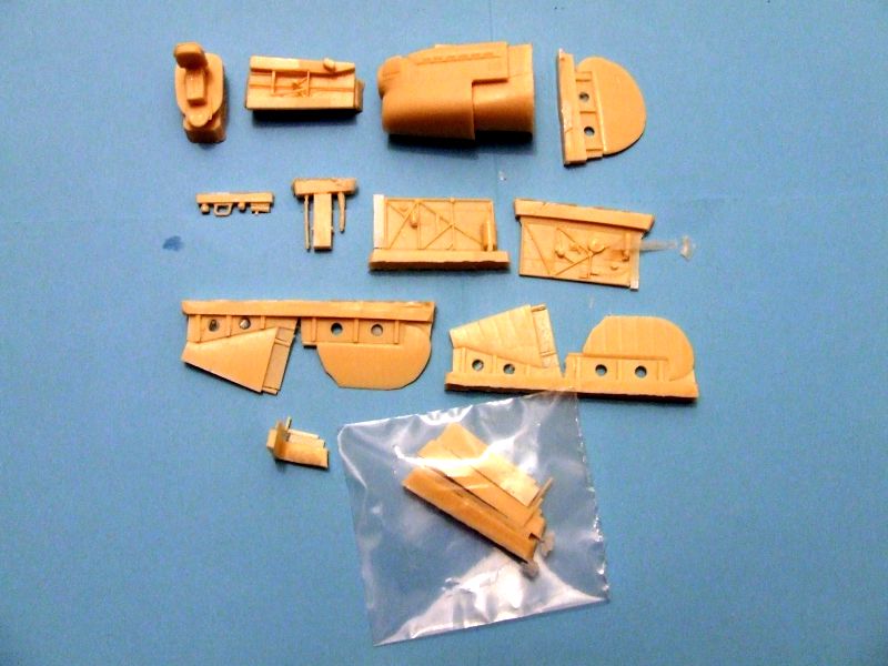 Y por ultimo las piezas de resina que lleva, que son la cabina del piloto, el morro del avion y por lo que veo también los timones, y algunas cosillas más, me voy a divertir con la lija para los encajes  :D